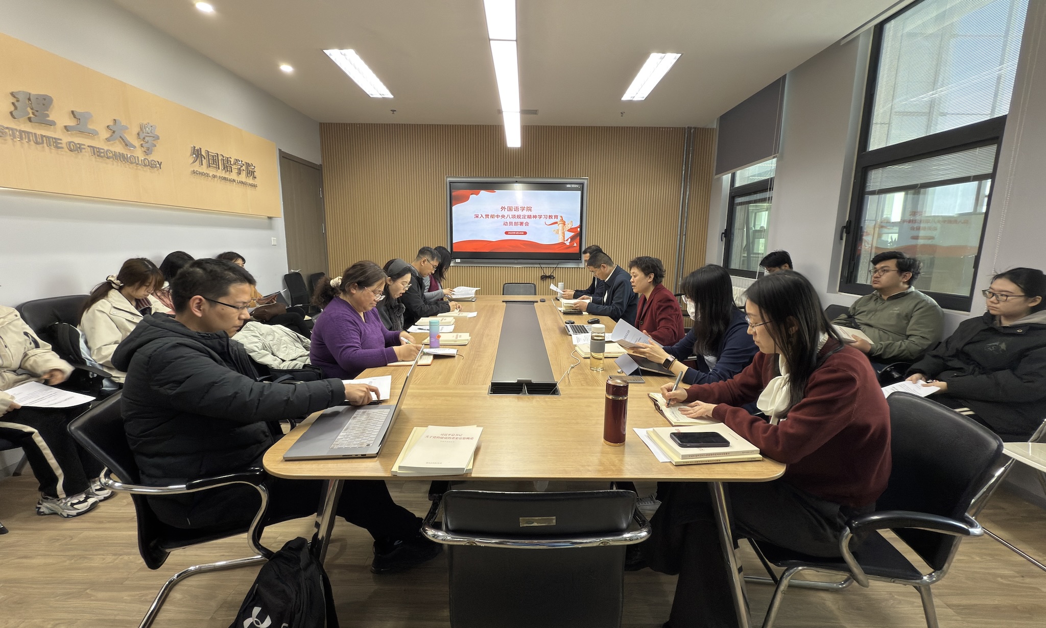 供稿、供图:李洪政 编辑:陈文婧 6月4日下午,北航英国365集团公司语言科学与工程系党支部书记王洪磊带队来我院英语系支部开展调研交流。英语系副主任、支部委员吴霜,院长助理、英语系副主任纪悦,支部委员郭戈,支部党员王蓓、王子琪,英语系陈智颖老师参加调研。会议由英语系支部书记李洪政主持。 李洪政代表支部对北航支部一行表示热烈欢迎。他表示,去年在主题教育学习期间两校英国365集团公司的两个支部首次进行了联学调研活动,对双方都具有重要意义。今年两个支部再次相聚,充分体现了北理工和北航两所兄弟院校和系部之间...
