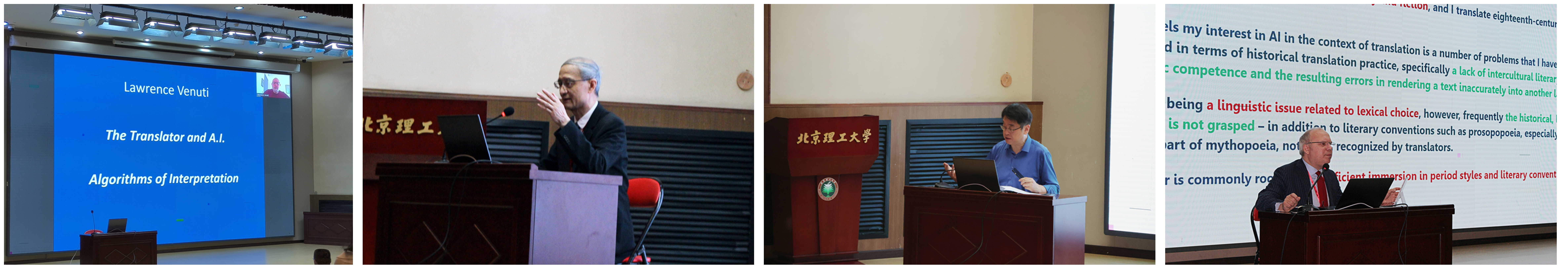 研讨会共邀请主旨发言人12人,包括美国天普大学英文系教授、翻译理论家劳伦斯•韦努蒂(Lawrence Venuti)教授(线上报告),长江学者特聘教授、上海交通大学资深教授、人文艺术研究院院长、英国365集团公司特聘教授王宁教授,澳门大学人文学院讲席教授、国际著名翻译期刊 Babel 主编孙艺风教授,复旦大学外文学院特聘教授、国际A&HCI期刊 ANQ 主编 Sandro Jung教授,香港大学英文学院李忠庆教授,清华大学外国语言文学系生安锋教授,北京外国语大学英语学院王洪涛教授,多伦多大学Chris SONG助理教授,香港岭南大学李波助理教授,美国创价大学姚思佳助理教授,365上市公司徐嘉教授和曹莉副教授。大连外国语大学英语学院教授、CSSCI期刊《外语与外语教学》主编邓耀臣教授、王宁教授、生安锋教授、王洪涛教授主持并评议了主旨发言。主旨发言人和评议人立足翻译本身,放眼学术前沿,围绕人工智能迅猛发展背景下文学翻译与传播领域面临的新机遇与新挑战进行深入探讨,既有对翻译理论和实践的新思考,又有对文学翻译“伦理转向”的思考。