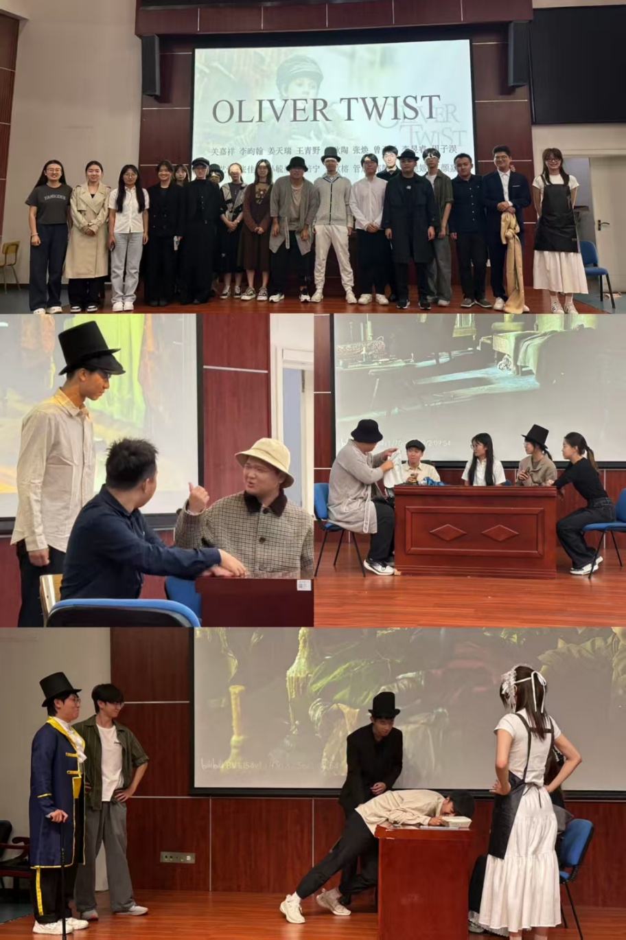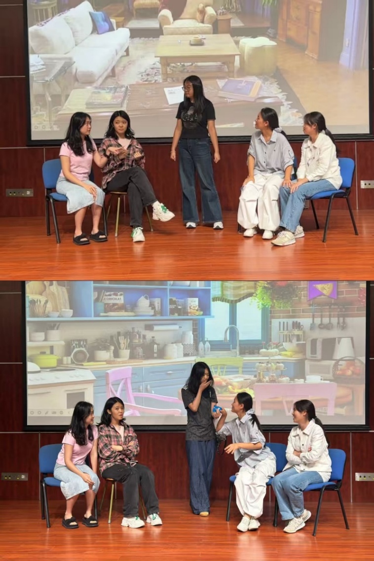 此次戏剧展演作为英语系小学期的传统延续,不仅展示了同学们扎实的专业功底和实践成果,更体现了英语系学子搭建文化桥梁、肩负文化传承与交流的使命与担当。戏剧节由2023级同学协调组织,张煜熙同学担任主持人,两个年级六个剧组从中英文原著与影视作品中选取精彩片段,精心改编,认真排练,呈现了一场异彩纷呈的表演。从剧本到舞台,从语言到动作,从道具到服装,从背景到配乐,每一位同学都将热情与创造倾心投入到这场精心组织的盛宴,整场演出圆满成功,收获了全场观众不断的掌声和诚挚的认可。